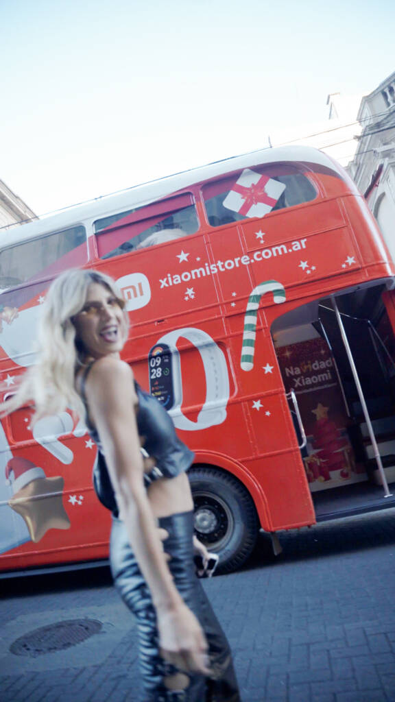 To extend visibility beyond digital channels, the campaign incorporated a fully decorated Xiaomi bus that traveled across Buenos Aires during the holiday period. The bus functioned as a moving brand activation, transforming urban space into an experiential touchpoint. It became both a physical symbol of the campaign and a continuous source of shareable content.