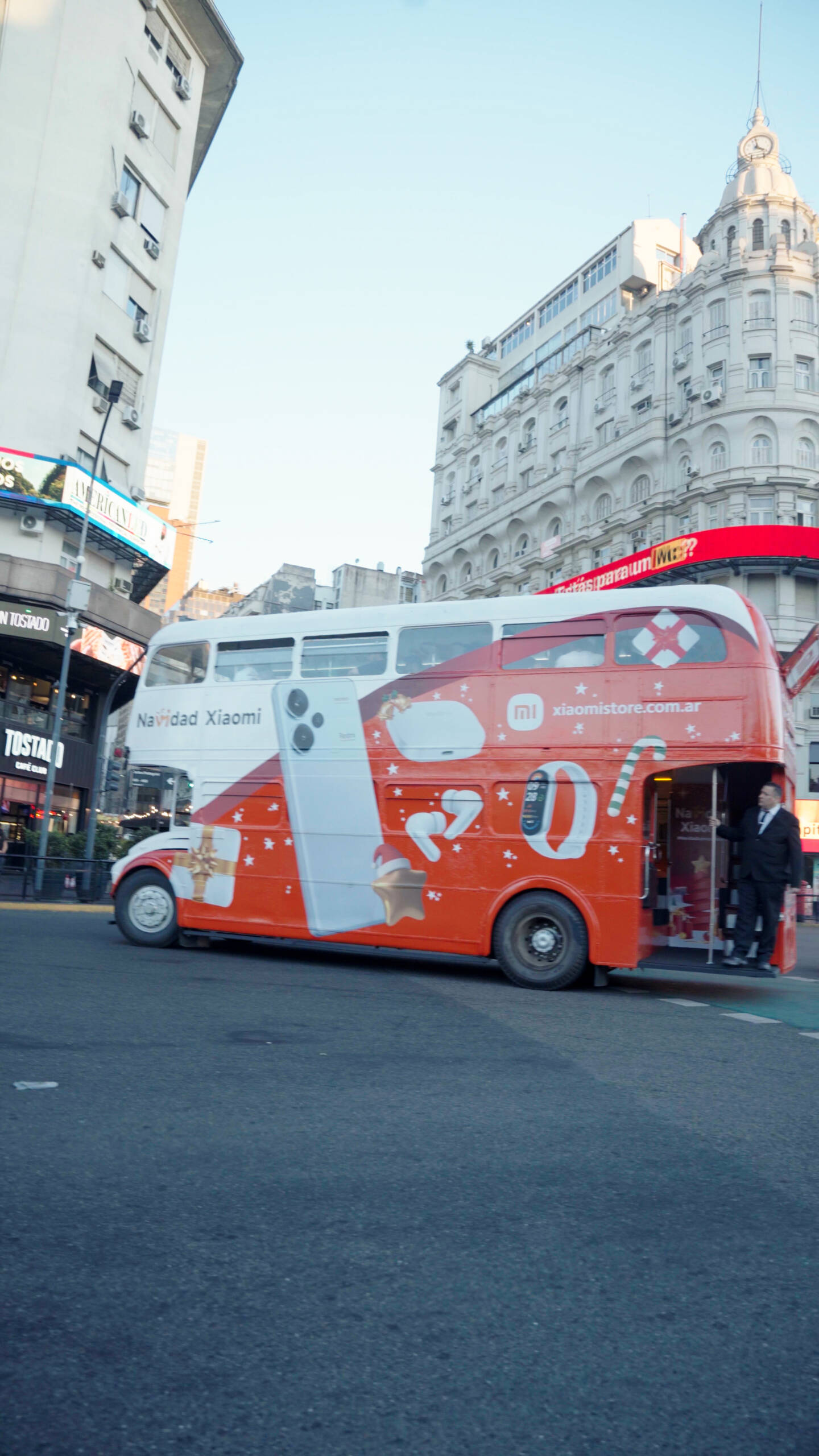 To extend visibility beyond digital channels, the campaign incorporated a fully decorated Xiaomi bus that traveled across Buenos Aires during the holiday period. The bus functioned as a moving brand activation, transforming urban space into an experiential touchpoint. It became both a physical symbol of the campaign and a continuous source of shareable content.